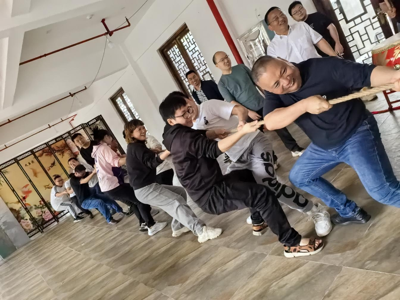 上午,全體職工來到岳陽漁窯小鎮(zhèn),總經(jīng)理劉軍民發(fā)表講話,對(duì)交投公司每一位辛勤工作、默默奉獻(xiàn)的職工表示感謝,并激勵(lì)大家今后要進(jìn)一步凝心聚力,穩(wěn)健經(jīng)營(yíng),科學(xué)管理,守正創(chuàng)新,全面提高企業(yè)效益與競(jìng)爭(zhēng)力,以更昂揚(yáng)的斗志、更務(wù)實(shí)的作風(fēng)推動(dòng)交投高質(zhì)量發(fā)展。運(yùn)動(dòng)點(diǎn)燃激情,新春迸發(fā)活力,聽完總經(jīng)理劉軍民的“春游開場(chǎng)詞”,交投全體職工分作4個(gè)小組,開展了拔河、傳遞歡樂活動(dòng),參賽選手奮勇拼搏、團(tuán)結(jié)協(xié)作,現(xiàn)場(chǎng)歡聲笑語、掌聲陣陣。活動(dòng)結(jié)束后,全體職工踏在小鎮(zhèn)里古樸的石板路上,感受如同江南水鄉(xiāng)風(fēng)韻。