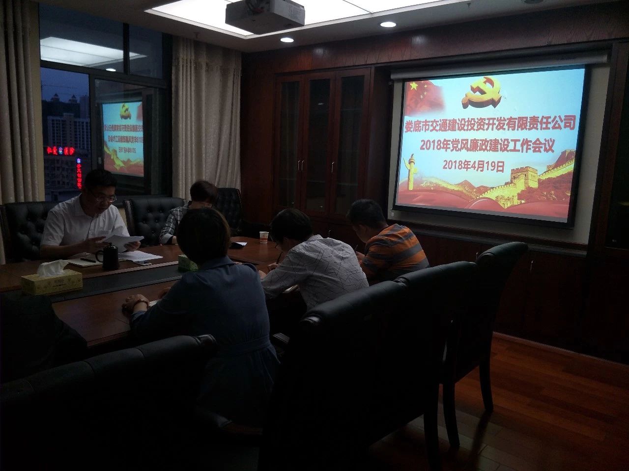 4月19日,市交建投組織召開了2018年黨風廉政建設部署工作會議,會議由黨支部副書記、總經(jīng)理肖小波主持,黨支部書記、董事長陽文林,市紀委派駐市經(jīng)信委紀檢組副組長曾熠出席會議,各部室、子公司全體員工參加會議。