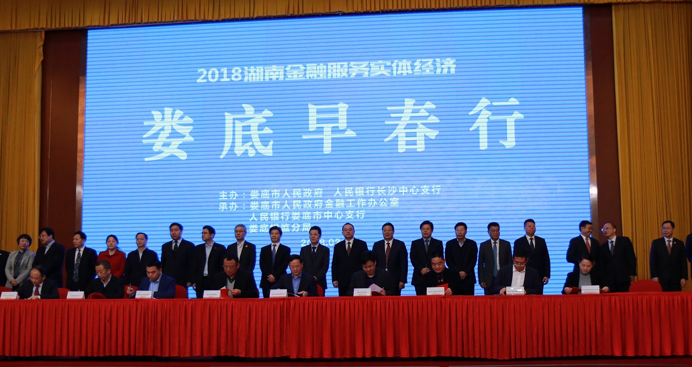 2月28日,2018年湖南金融服務(wù)實(shí)體經(jīng)濟(jì)·婁底早春行政銀企對接會召開,婁底市人民政府與14家省級金融機(jī)構(gòu)2018-2020年共簽約授信金額2365億元,全面助力我市實(shí)體經(jīng)濟(jì)發(fā)展。湖南省政府金融辦主任張世平,人民銀行長沙中心支行行長馬天祿,婁底市委書記李薦國,市委副書記、市長楊懿文出席活動。