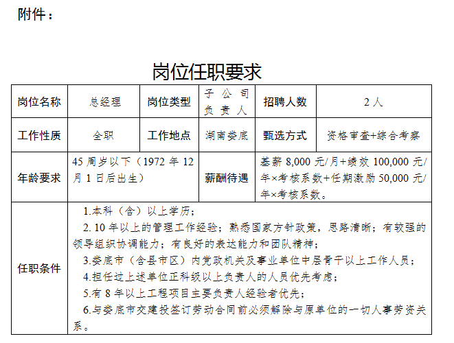 (一)婁底市通旅投資開發(fā)有限公司:總經(jīng)理1名。
