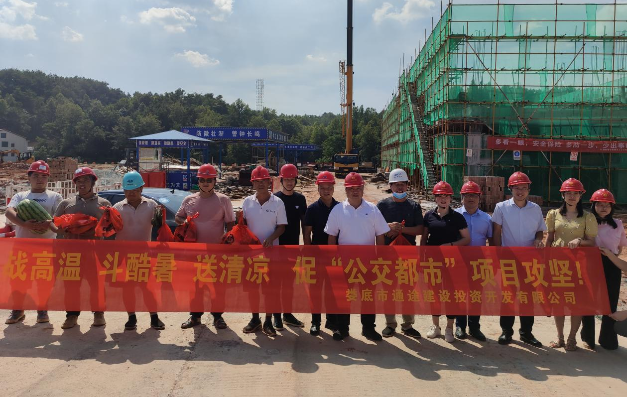 驕陽似火,酷暑難擋。近期持續(xù)高溫給項(xiàng)目一線人員帶來嚴(yán)峻的“烤”驗(yàn),為確保攻堅(jiān)項(xiàng)目建設(shè)安全有序的推進(jìn),7月15日,市交投公司支委班子深入溫金公路、“公交都市”、婁底南站綜合客運(yùn)樞紐等項(xiàng)目施工現(xiàn)場(chǎng),為奮戰(zhàn)在驕陽酷暑下的一線人員送去關(guān)懷和慰問,為他們發(fā)放了防暑降溫物資,全力助推重點(diǎn)項(xiàng)目建設(shè)。