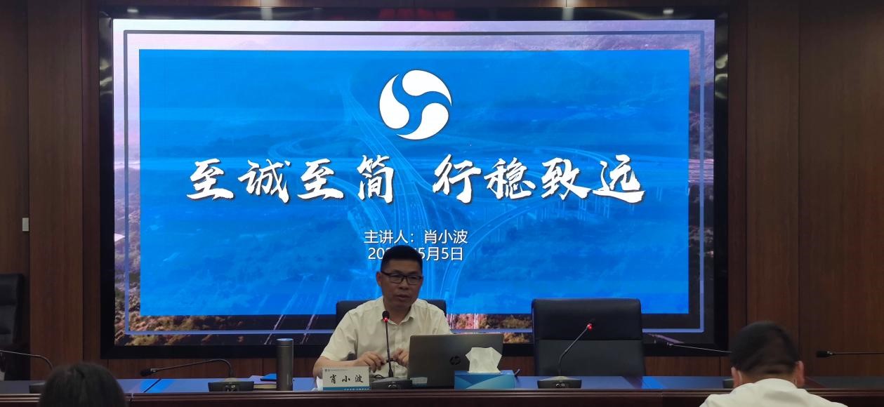 5月5日,總經(jīng)理肖小波親自宣講,對(duì)市交投“至誠(chéng)至簡(jiǎn),行穩(wěn)致遠(yuǎn)”的企業(yè)核心理念進(jìn)行深入講解。肖小波從“責(zé)任、擔(dān)當(dāng)、真誠(chéng),簡(jiǎn)約、執(zhí)行、守正,穩(wěn)健、穩(wěn)定、穩(wěn)固,愿景、使命、路徑”十二個(gè)方面,全面詮釋如何打造“至誠(chéng)至簡(jiǎn),行穩(wěn)致遠(yuǎn)”的優(yōu)秀管理團(tuán)隊(duì)。