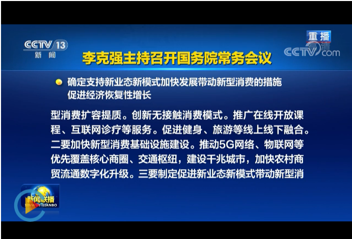 李克強(qiáng)主持召開國務(wù)院常務(wù)會 確定支持新業(yè)態(tài)新模式加快發(fā)展帶動新型消費(fèi)的措施 促進(jìn)經(jīng)濟(jì)恢復(fù)性增長等
