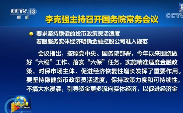 李克強(qiáng)主持召開國務(wù)院常務(wù)會(huì)議 要求堅(jiān)持穩(wěn)健的貨幣政策靈活適度 著眼服務(wù)實(shí)體經(jīng)濟(jì)明確金融控股公司準(zhǔn)入規(guī)范等